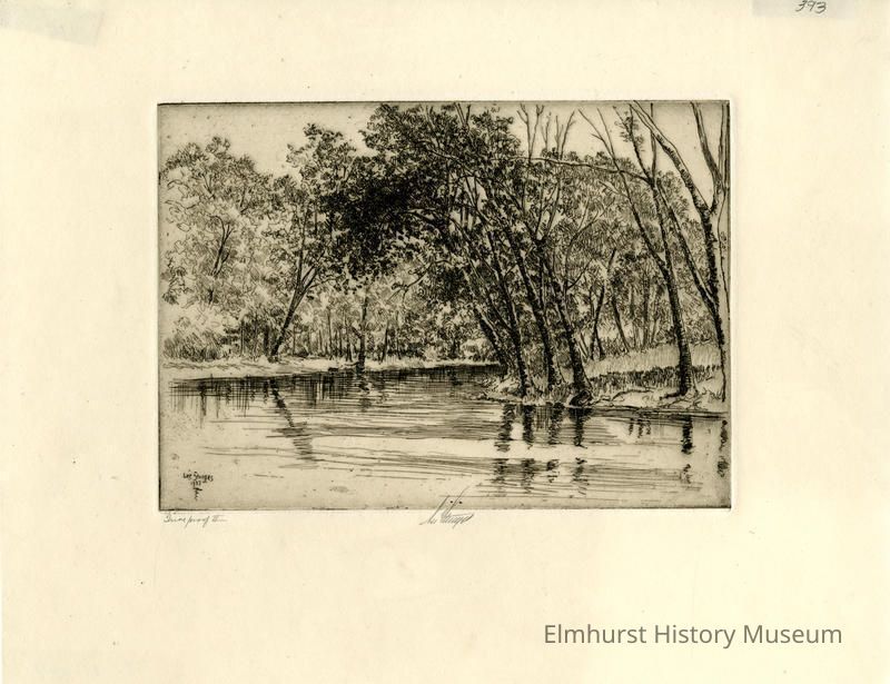 Etching of a tree-lined river. Trial proof. Signed and dated.
