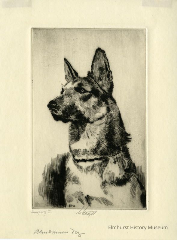 Etching of a German Shepherd. Trial proof. Signed and dated.