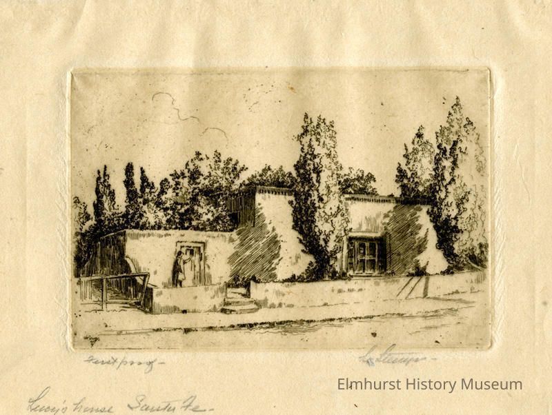 Etching of a Spanish style house. Signed and dated. First proof.