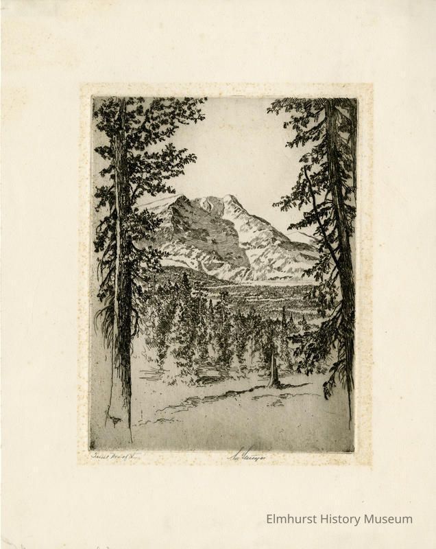 Etching of a snow covered mountain. Signed and dated. Trial proof.