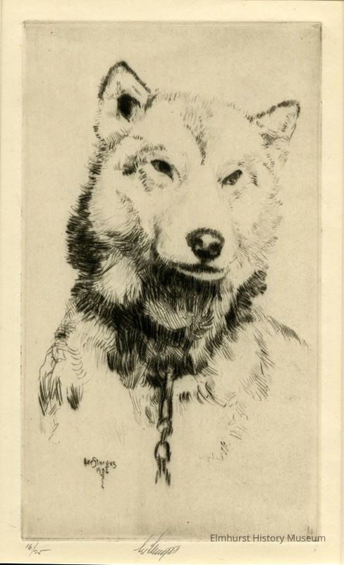 Etching of an Alaskan Husky. Signed and dated.