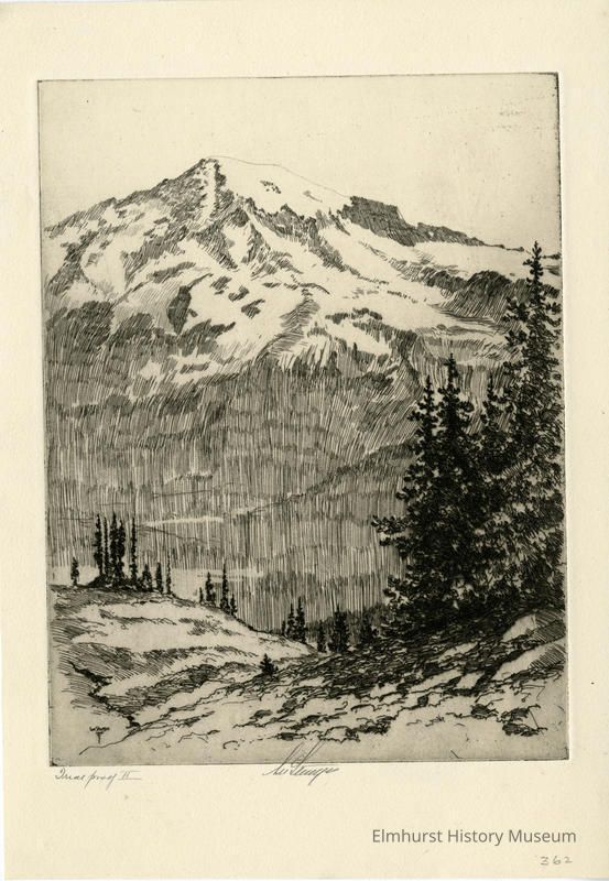 Etching of a snow-covered mountain. Trial proof. Signed and dated.