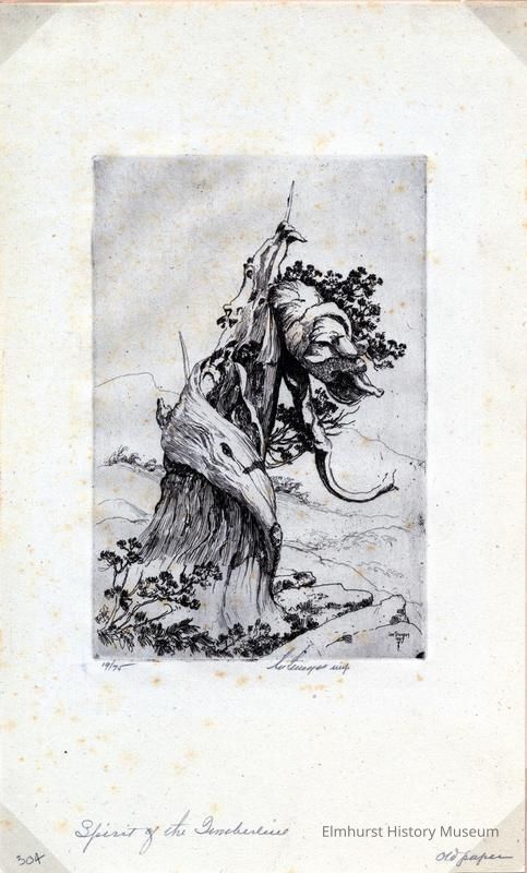 Etching of a gnarled tree. Mounted in a 2-page mat. #19/75. Signed and dated.