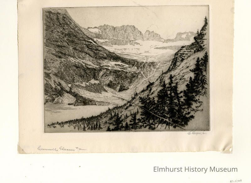 Etching of a glacier. Signed and dated.