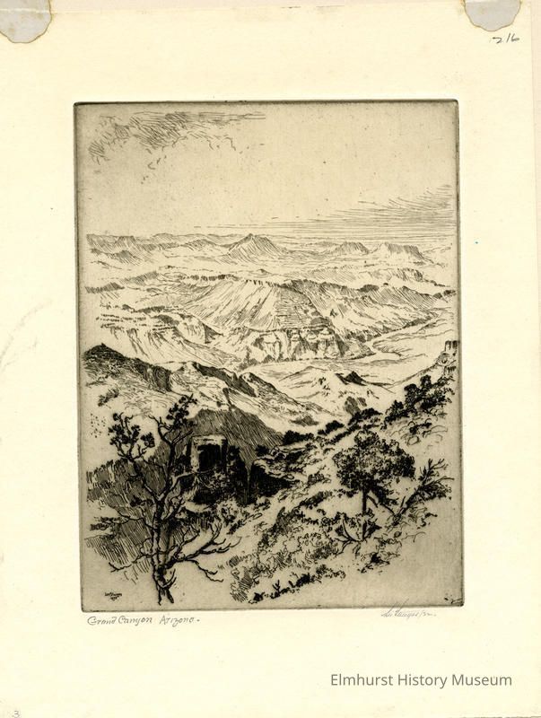Etching: aerial view of the Grand Canyon. Mounted in a 2-page mat. Signed and dated.