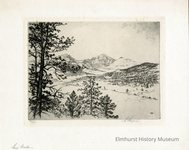 Etching: mountains in the background. #27/50 Signed and dated.