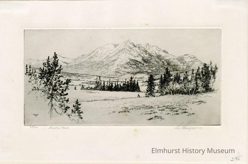 Etching: meadow in the foreground, mountains in the background. Mounted on a 2-page mat. Signed and dated. #25/100.