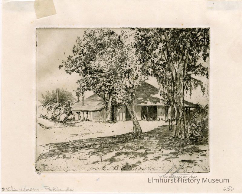 Etching of a building. Mounted on a 2-page mat. Signed and dated.