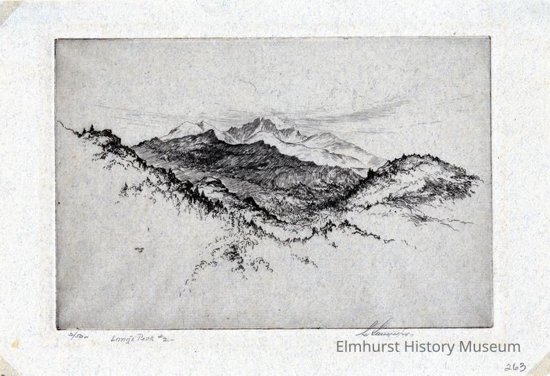Etching of a mountain. Mounted on a 2-page mat. Signed and dated. #2/50.