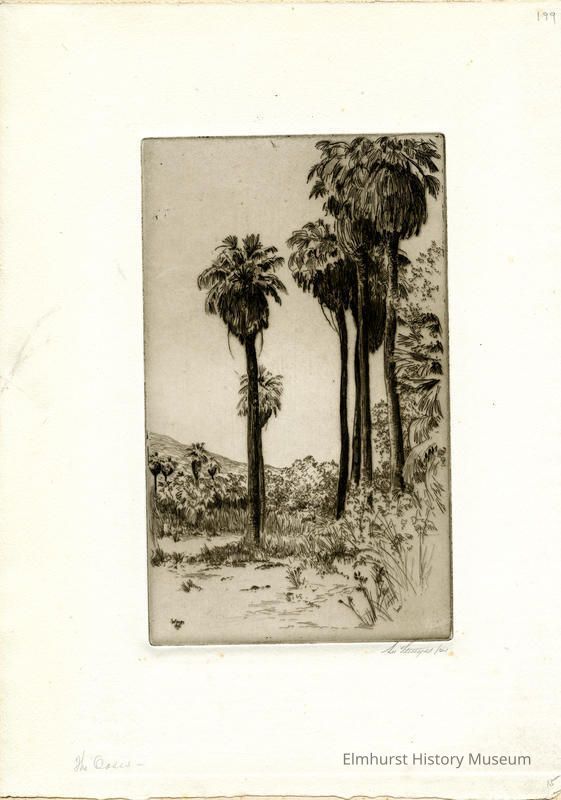 Etching of several palm trees. Mounted in a two-page mat. Signed and dated.