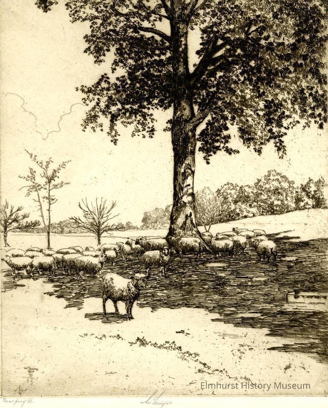 Etching of sheep under a tree. Trial proof VI. Signed and dated.