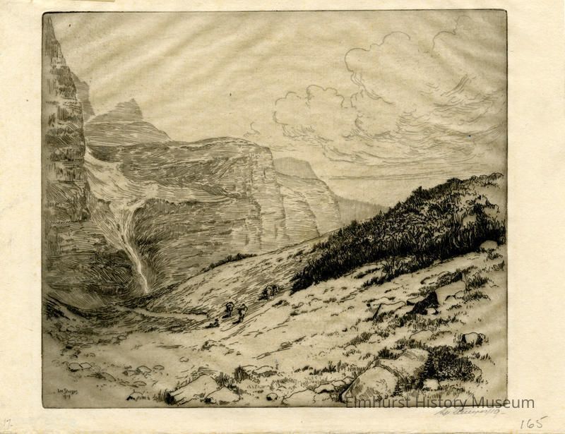 Etching of a mountain pass. Mounted in a 2-page mat. Signed and dated.