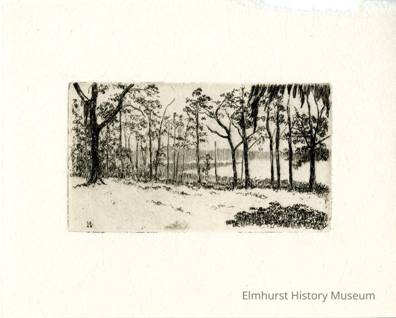 Etching of trees. Signed. Inscription in lower left corner of etching: "LS/ 48." Untitled.