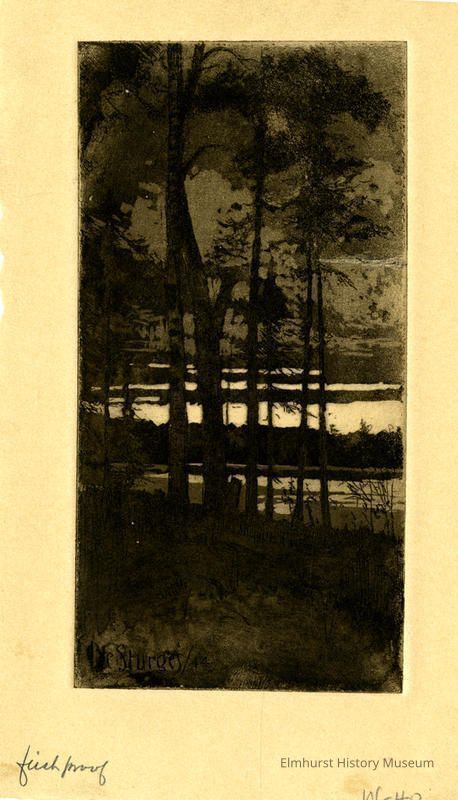 Etching: a dark scene of trees on shore. Signed and dated. First proof.