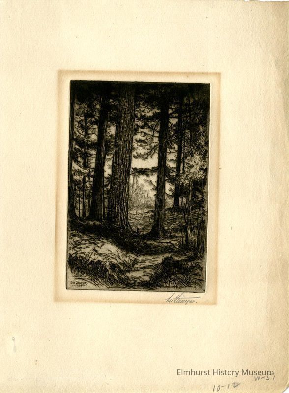 Etching of a forest. Signed and dated. Title on back.