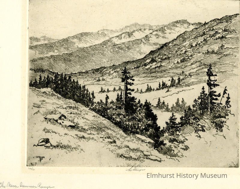 Etching of mountains. Mounted in a 2-page mat. #22/50. Signed and dated.
