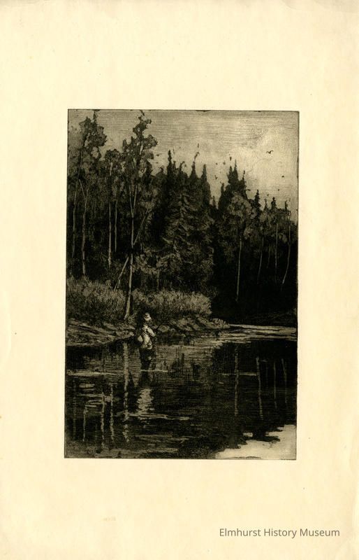 Etching of a man fishing in a river. Not dated.
