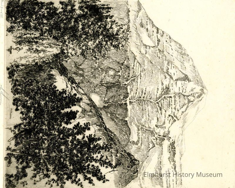 Etching of a mountain. Trial proof VII. Signed and dated.