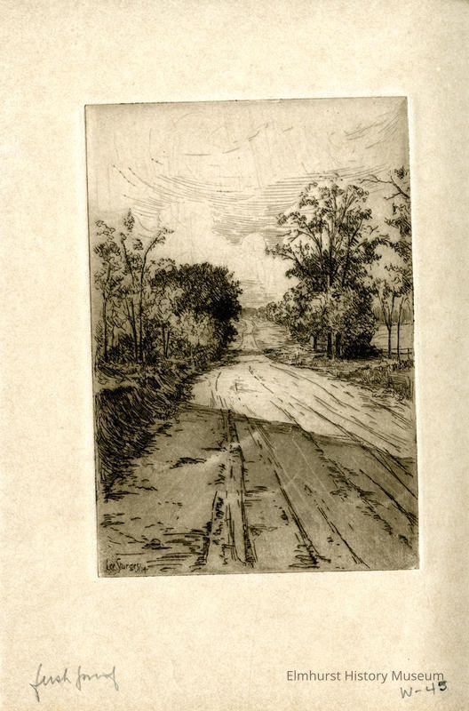 Etching of a tree-lined road. Signed and dated. First proof.
