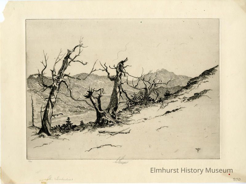 Etching of gnarled trees. #3/50. Signed and dated. Note: The inscription "Lee Sturges/ 1934" which appears in the lower right corner of this etching is printed backwards.