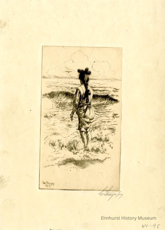 Etching of an arched building which says "Manhattan." There are pencil marks in several places on the etching. Signed and dated.