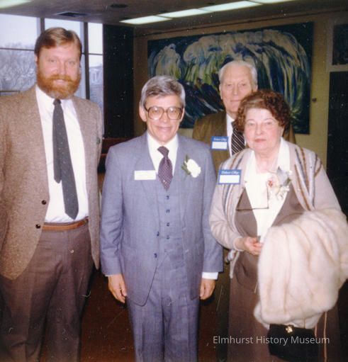 Mr. Richard Carlson, Dr. Juan Frick, Mrs. Eleanor King Hookham and Robert at opening of an art show in Elmhurst College.