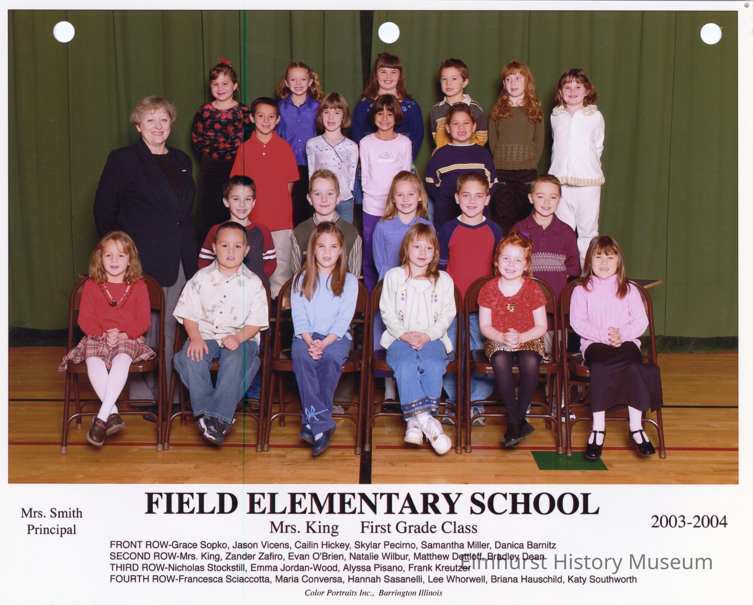 Fifth grade class photograph from Field Elementary School, under teacher Mrs. King. Student names are listed at the bottom of the photograph.Photograph Details