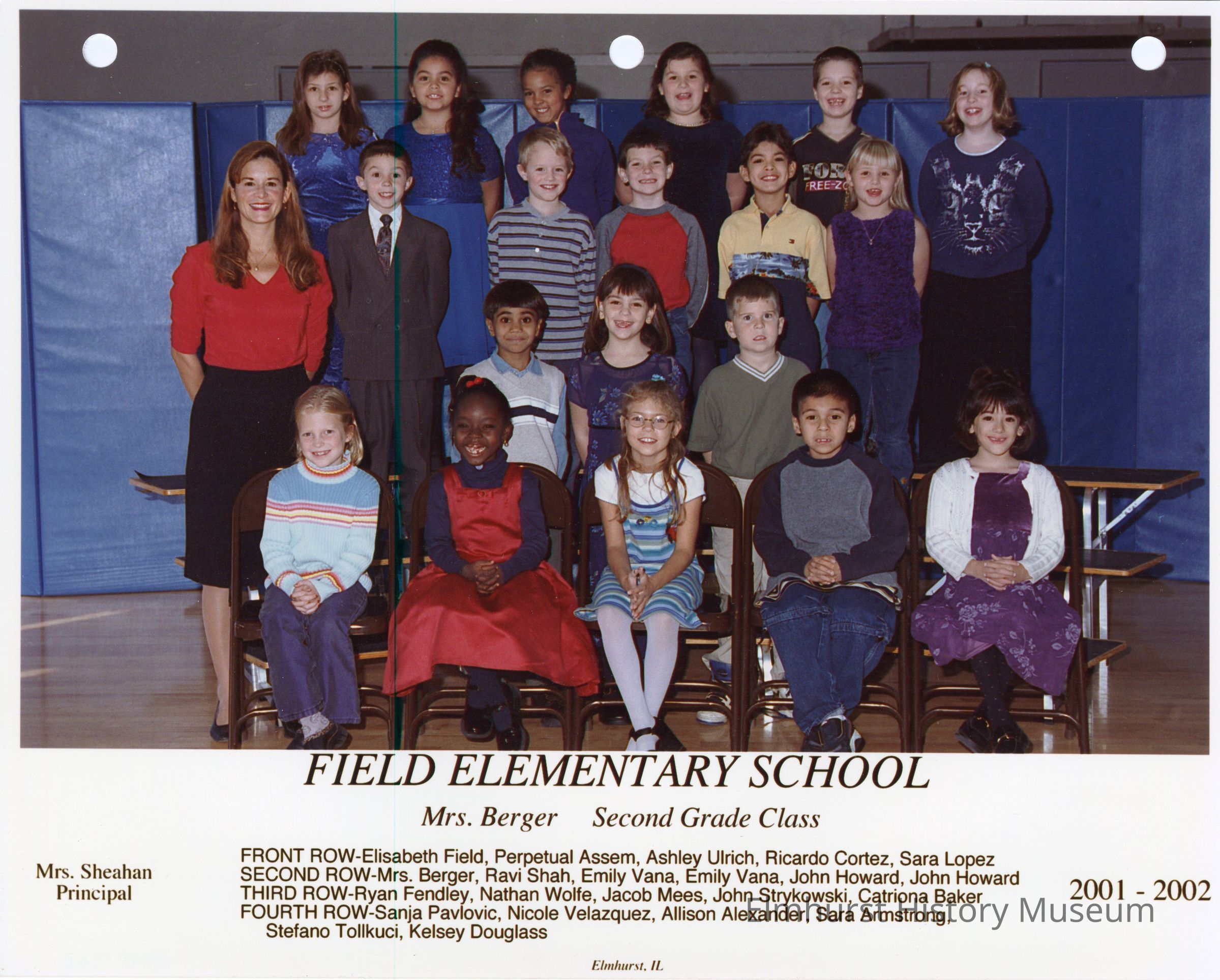 Second grade class photograph from Field Elementary School, under teacher Mrs. Berger. Student names are listed at the bottom of the photograph.Photograph Details