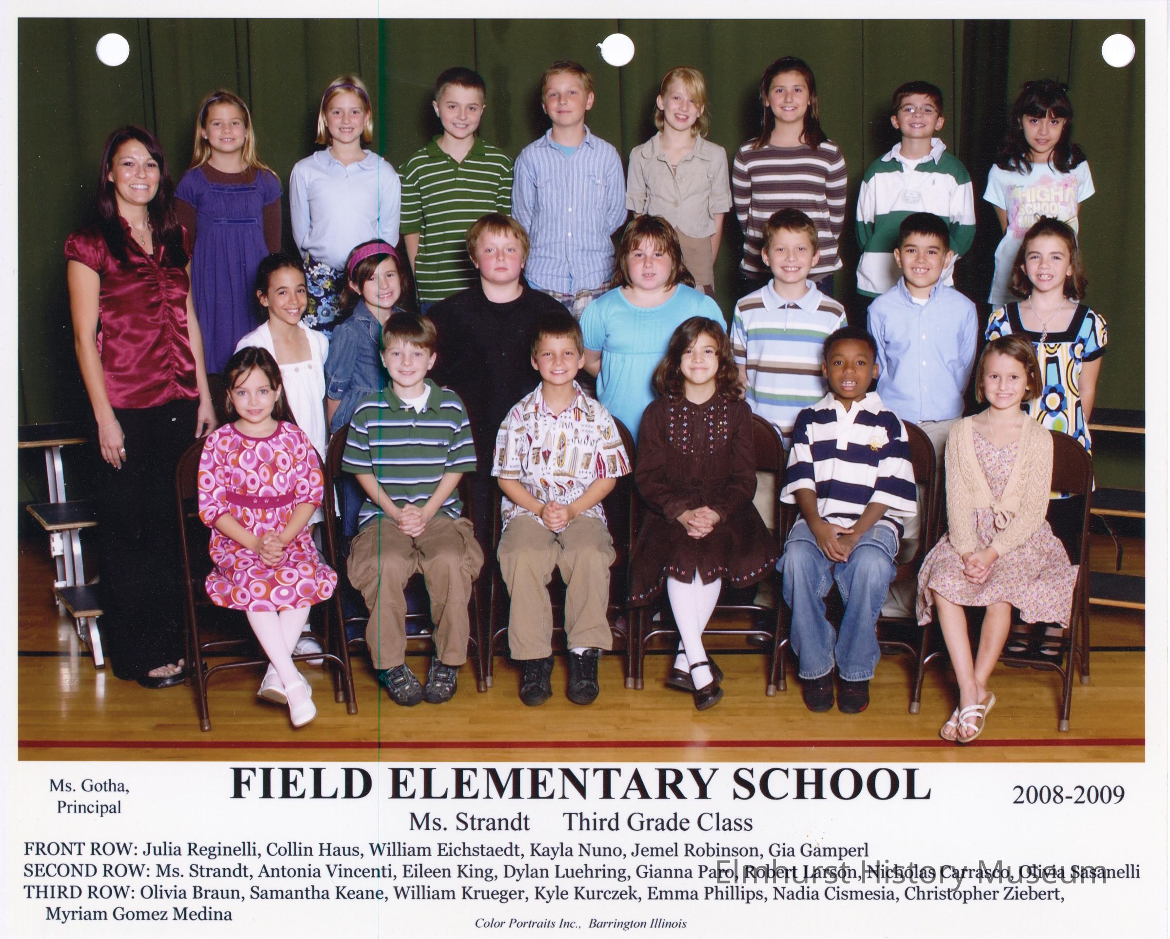 Third Grade Class photograph from Field Elementary School, under teacher, Ms. Strandt. Student names are listed at the bottom of the photograph.Photograph Details