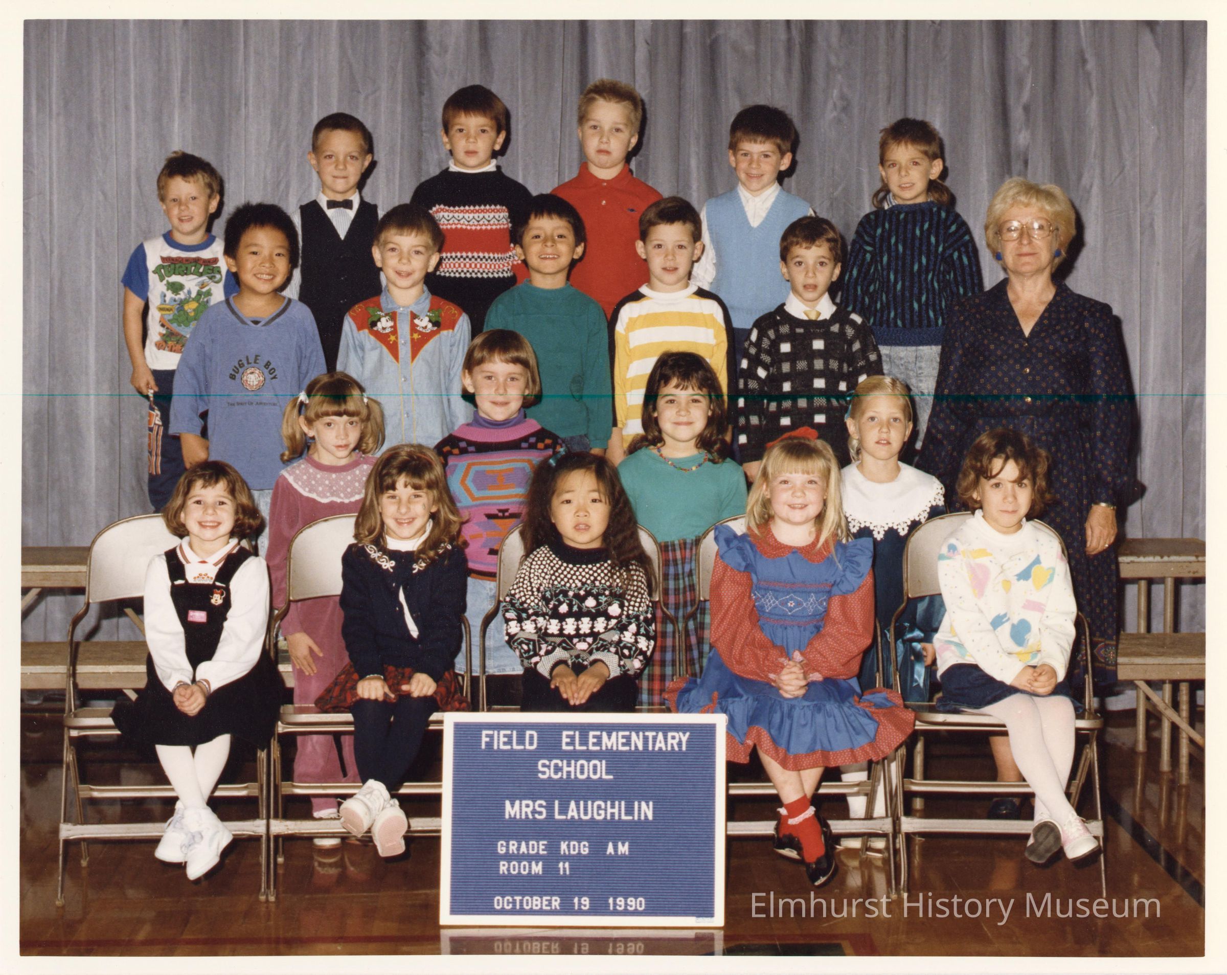A.M. Kindergarten class photograph from Field Elementary School, under teacher, Mrs. Laughlin.Photograph Details