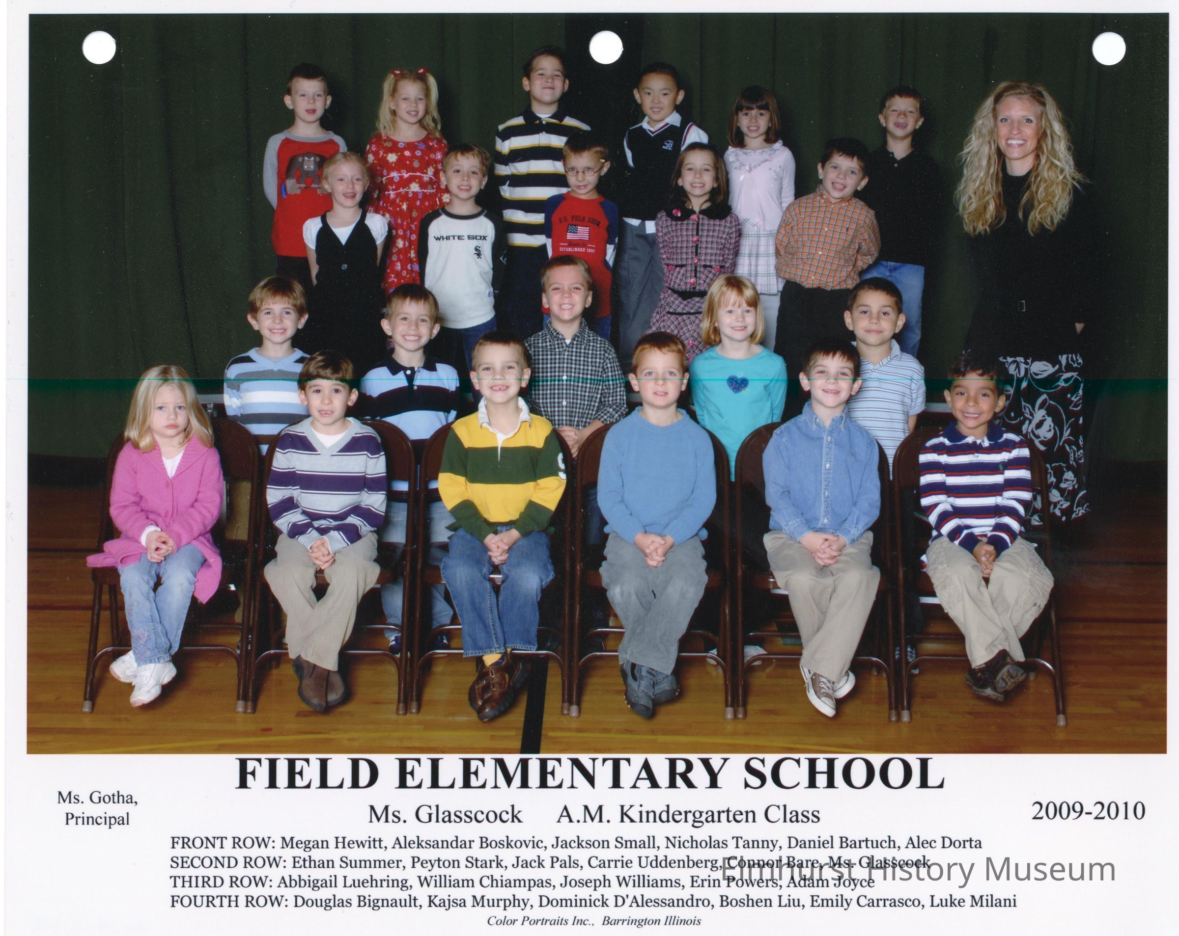 Kindergarten A.M. class photograph from Field Elementary School, under teacher Ms. Glasscock.