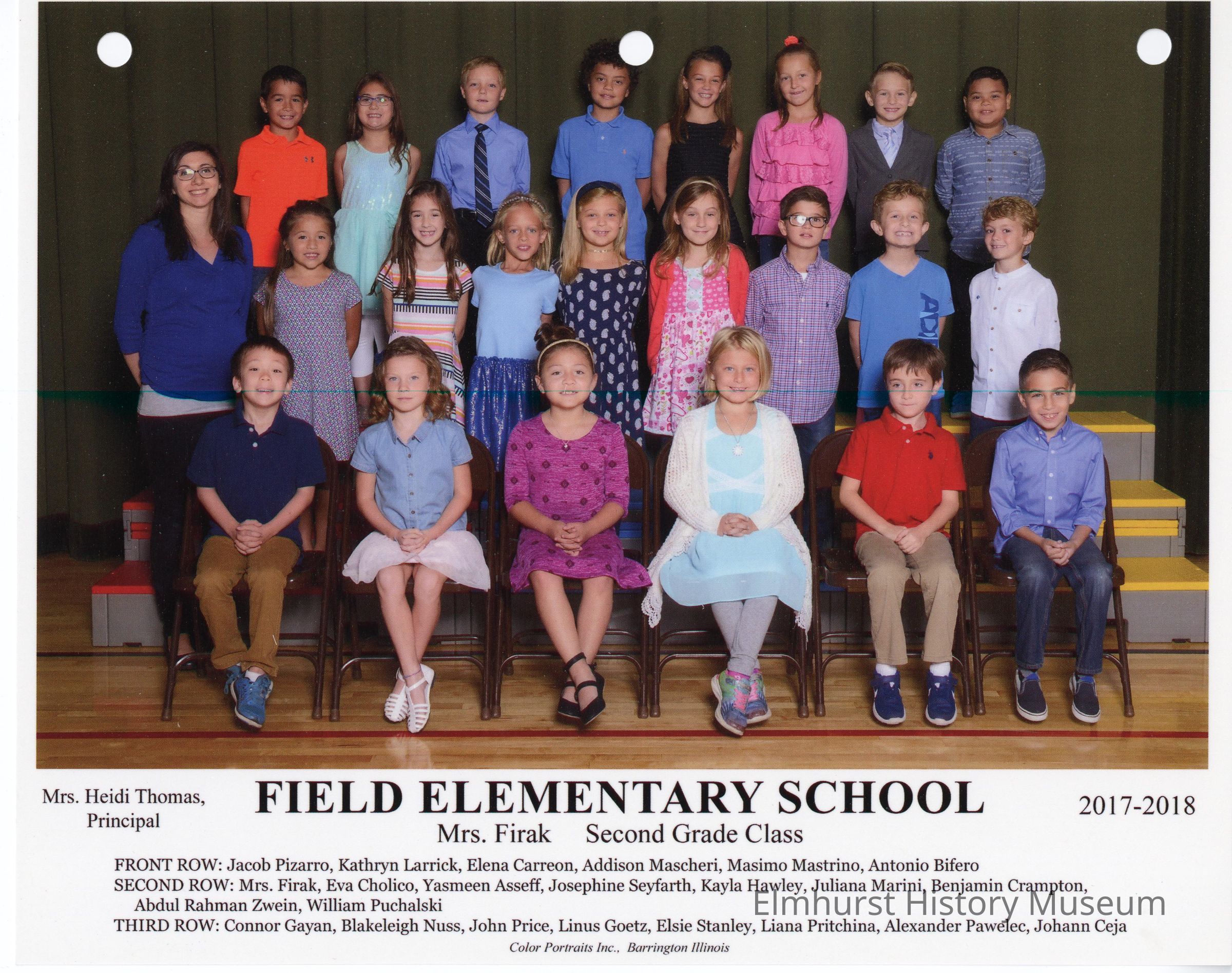Second Grade class photograph from Field School under teacher, Mrs. Firak.