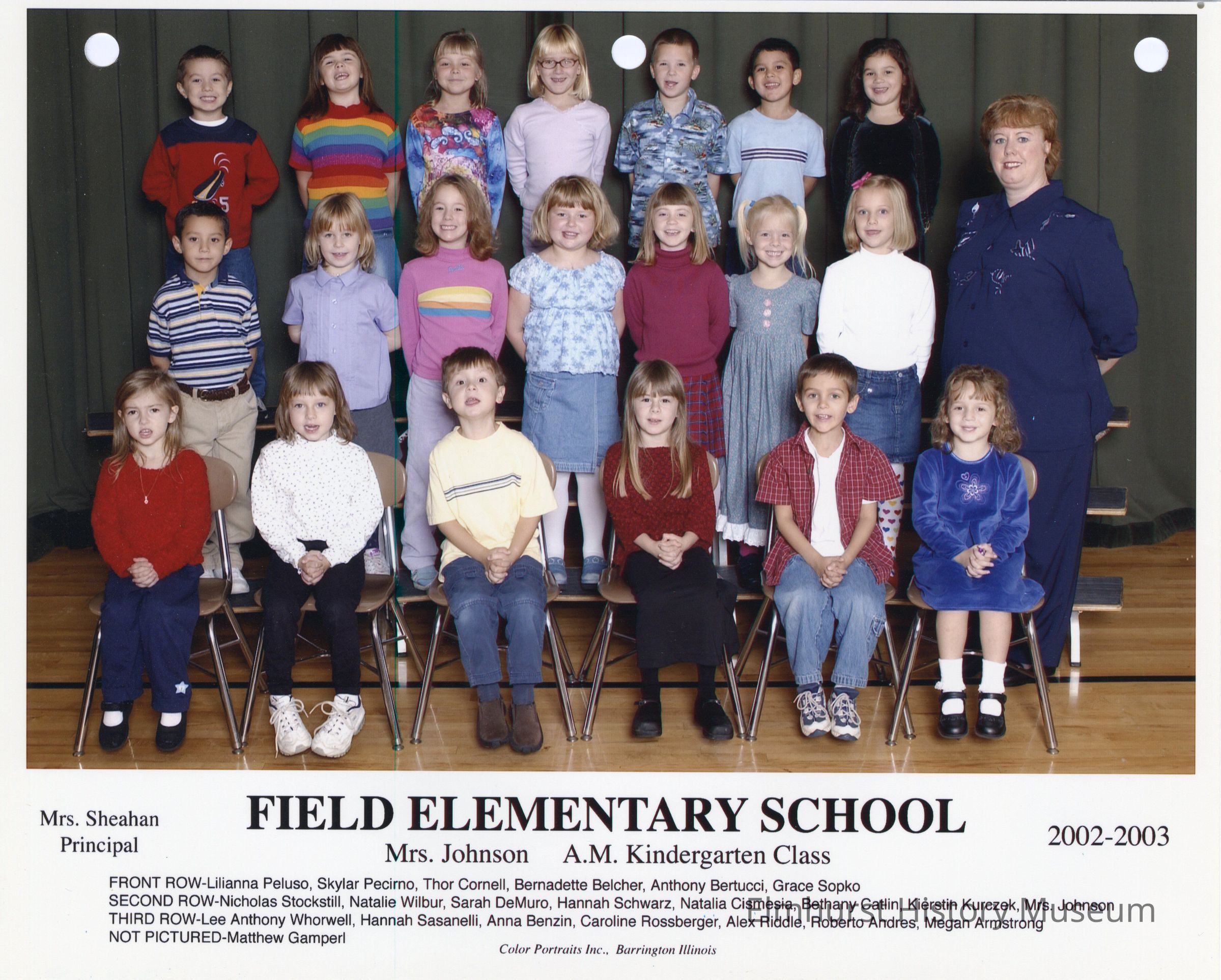 Kindergarten class photograph from Field Elementary School, under teacher Mrs. Johnson. Student names are listed at the bottom of the photograph.Photograph Details