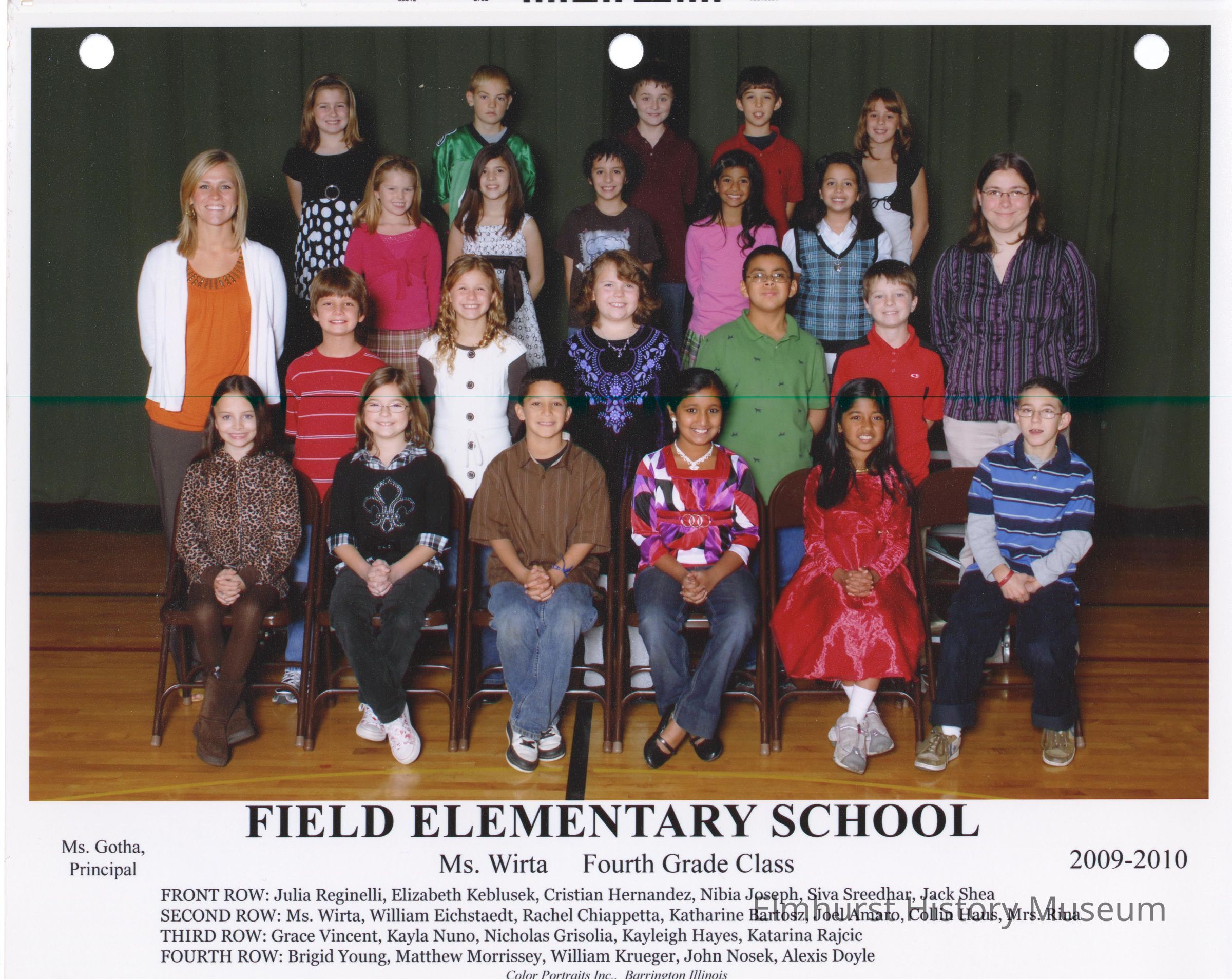Fourth Grade class photograph from Field Elementary School, under teacher Ms. Wirta.
