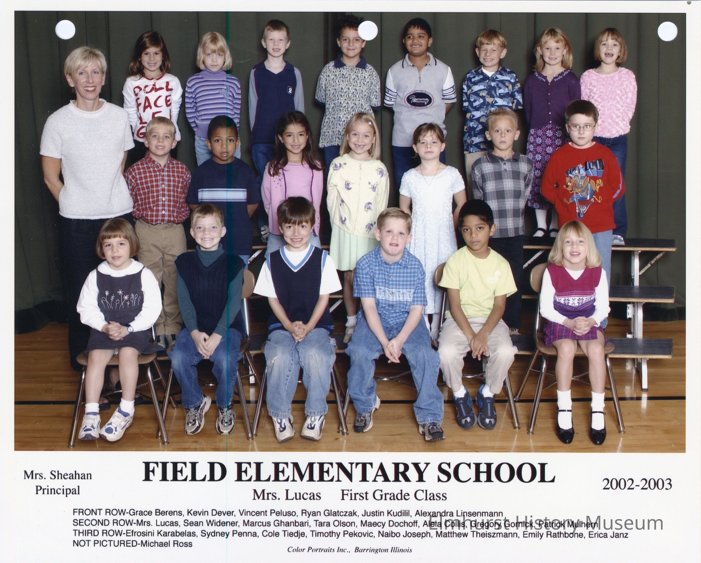 Fifth grade class photograph from Field Elementary School, under teacher Mrs. Lucas. Student names are listed at the bottom of the photograph.Photograph Details