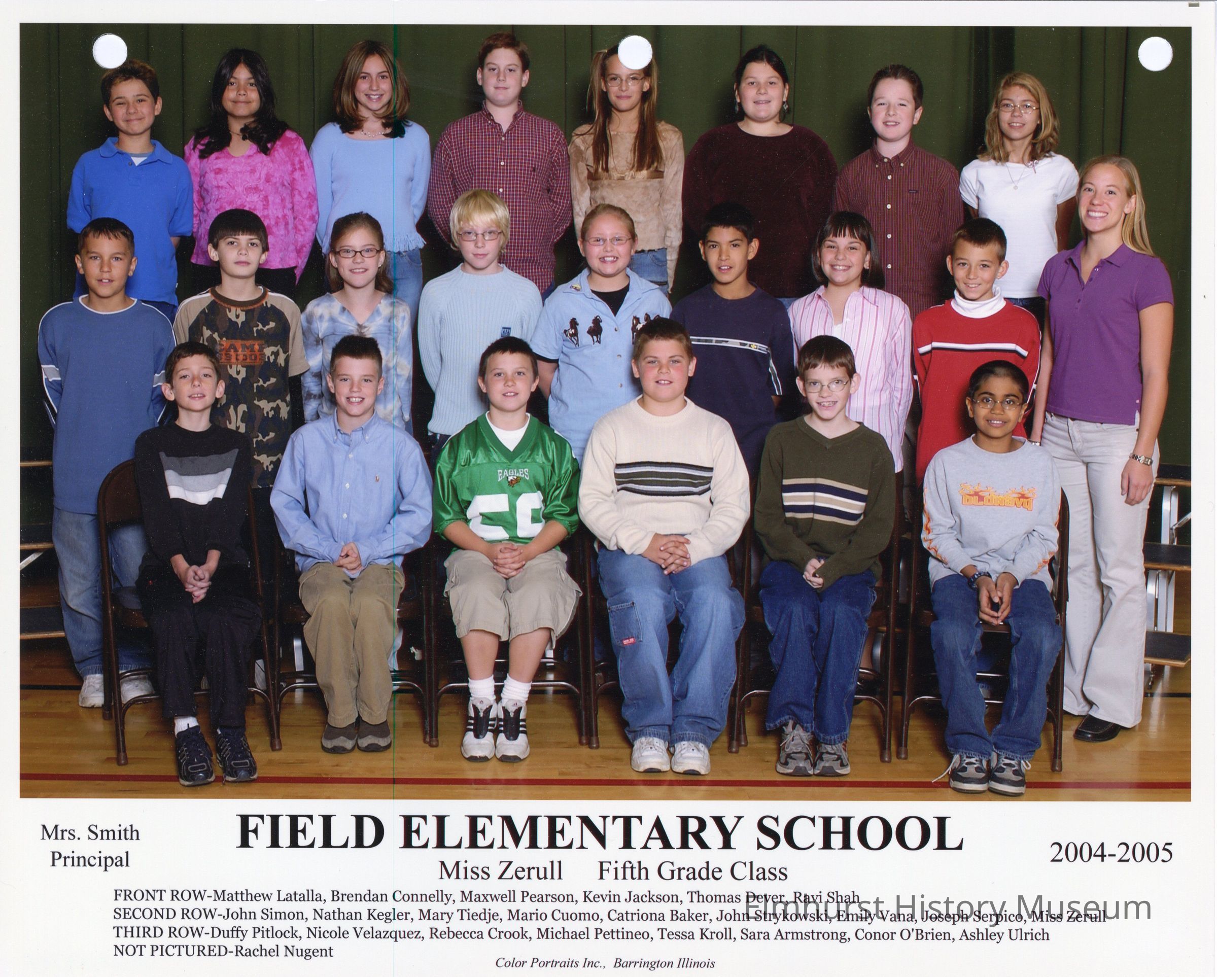 Fifth grade class photograph from Field Elementary School, under teacher Ms. Zerull. Student names are listed at the bottom of the photograph.Photograph Details