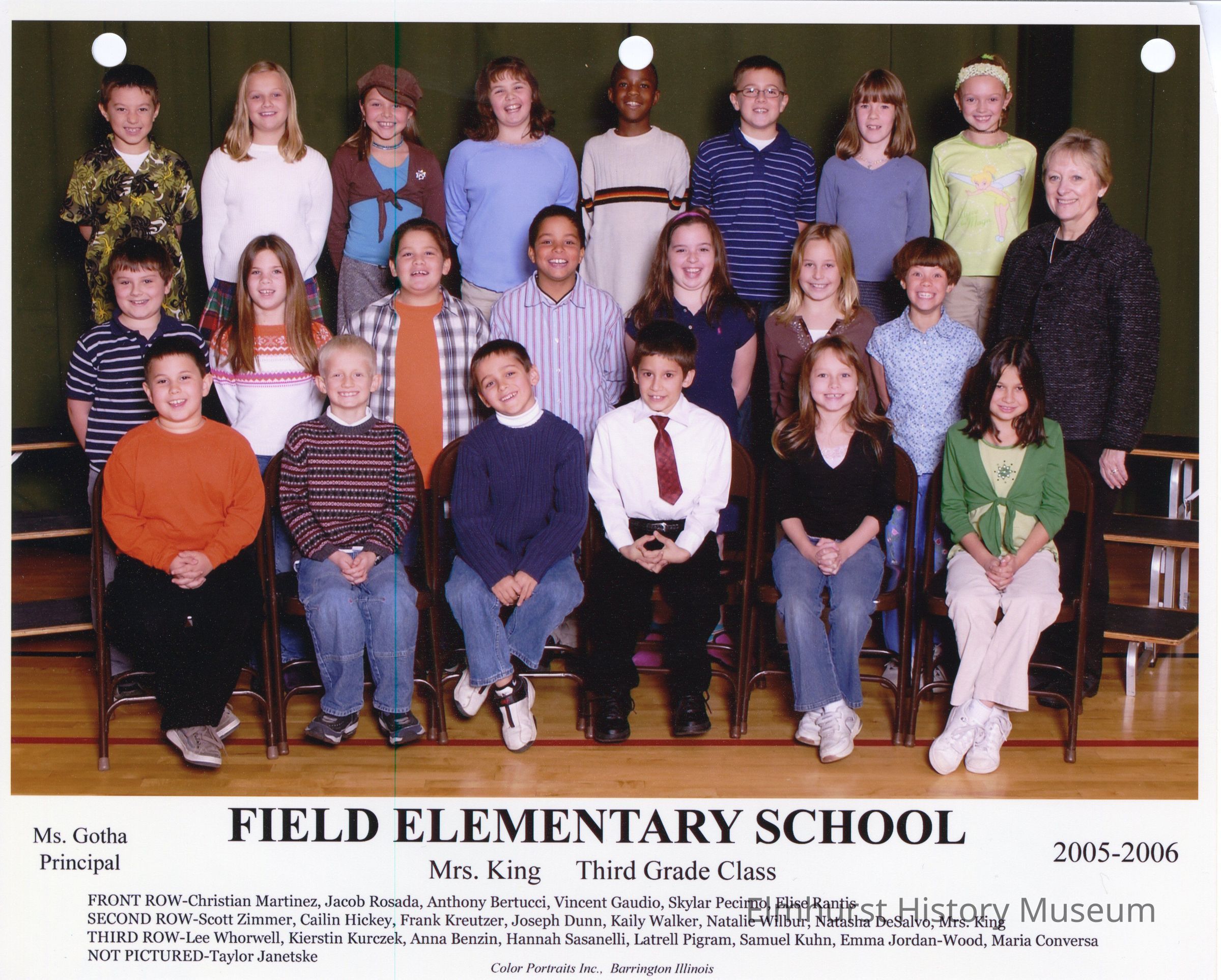 Third grade class photograph from Field Elementary School, under teacher Mrs. King. Student names are listed at the bottom of the photograph.Photograph Details
