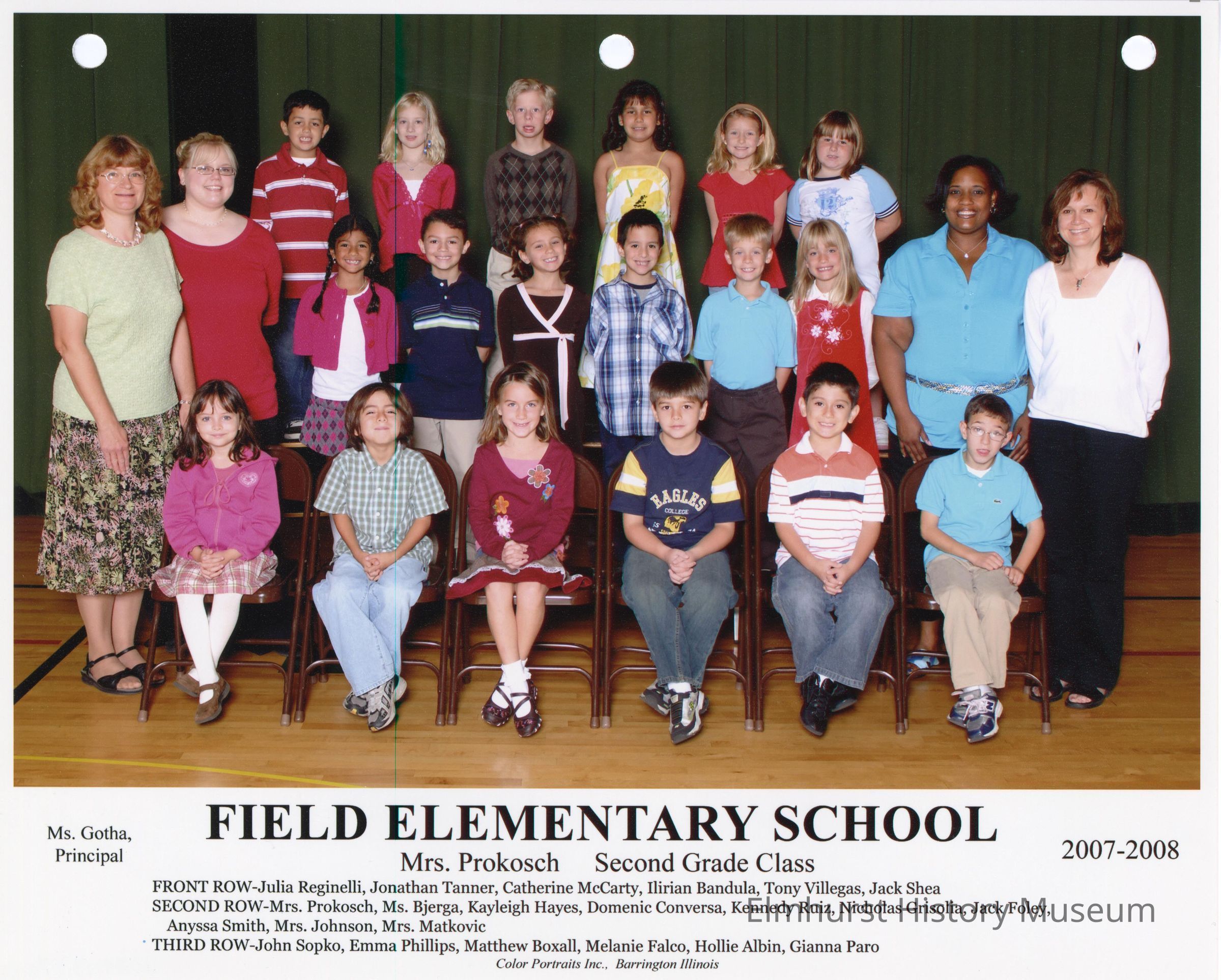 Second grade class photograph from Field Elementary School, under teacher, Mrs. Prokasch. Student names are listed at the bottom of the photograph.Photograph Details