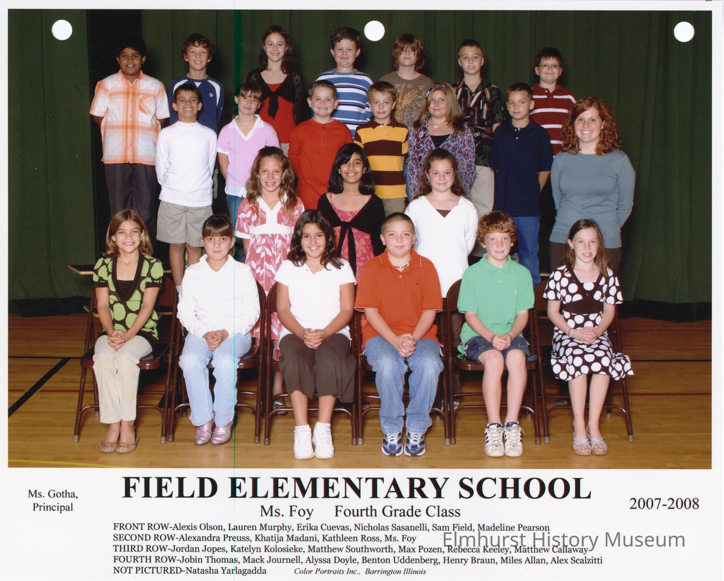 Fourth grade class photograph from Field Elementary School, under teacher, Ms. Foy. Student names are listed at the bottom of the photograph.Photograph Details