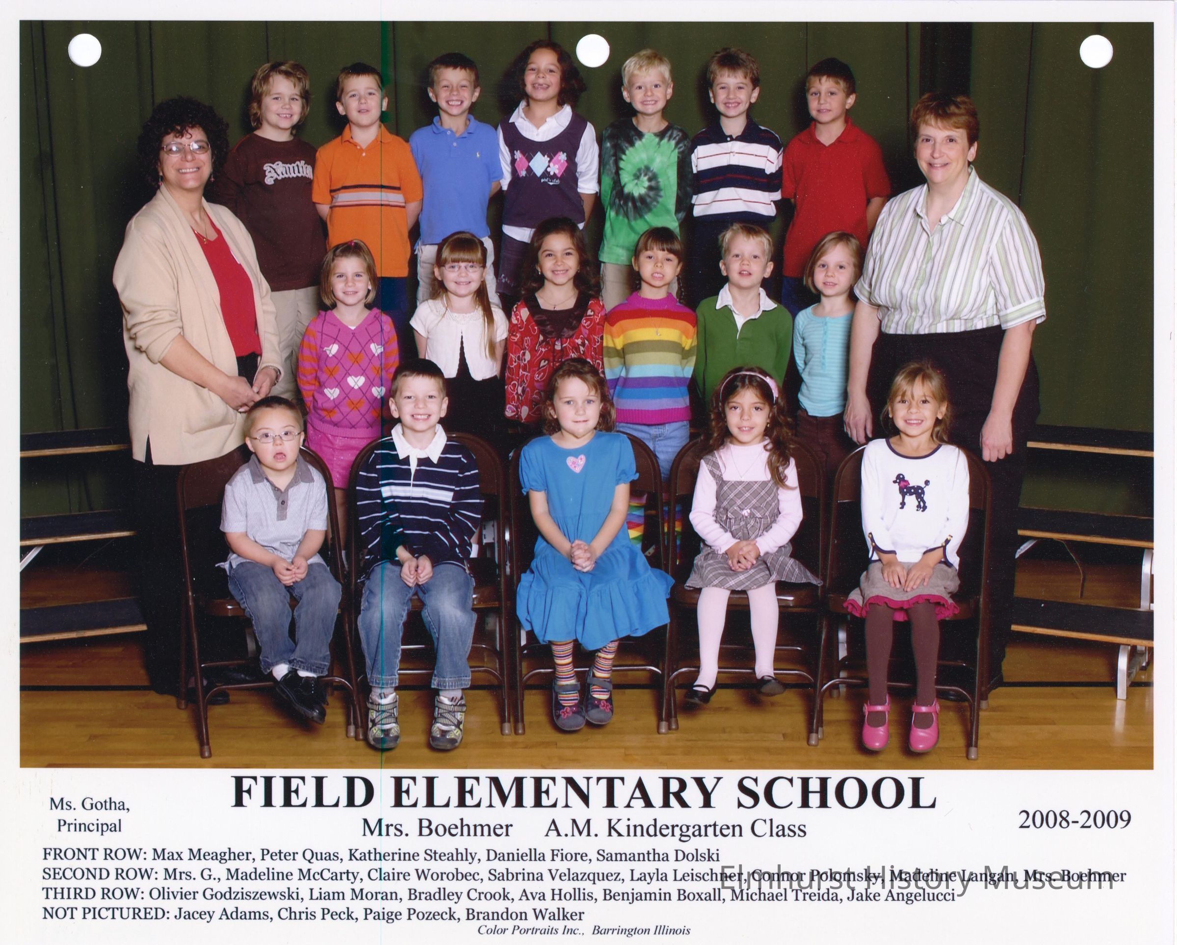 A.M. Kindergarten Class photograph from Field Elementary School, under teacher, Mrs. Boehmer.