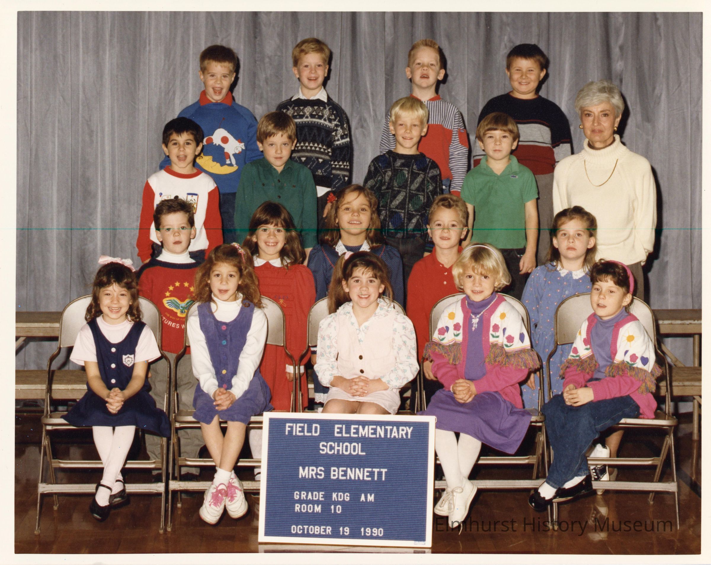 A.M. Kindergarten class photograph from Field Elementary School, under teacher Mrs. Bennett.Photograph Details