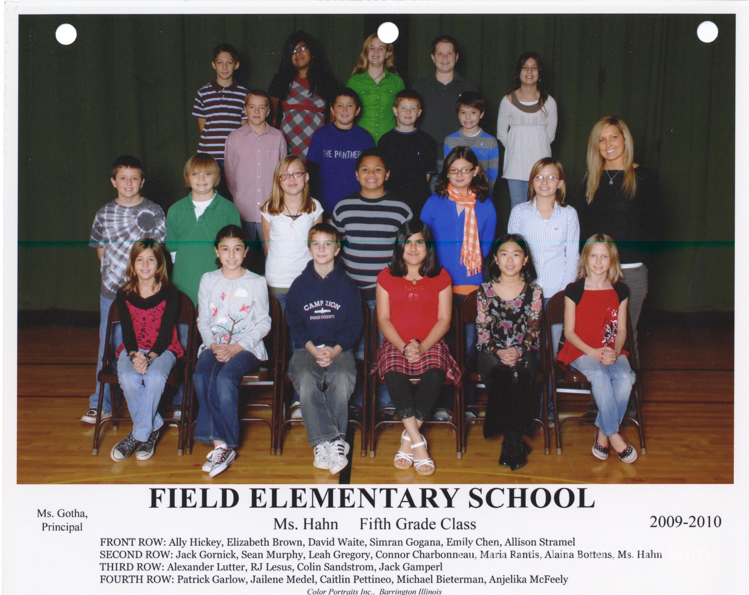 Fifth Grade class photograph from Field Elementary School, under teacher Ms. Hahn.