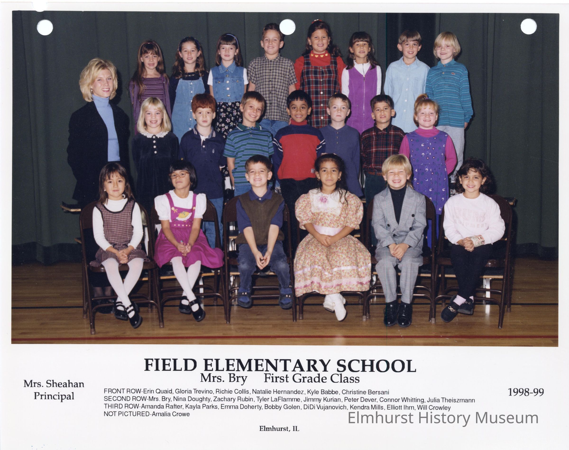 First grade class photograph from Field Elementary School, under teacher Mrs. Bry. Student names are listed at the bottom of the photograph.Photograph Details