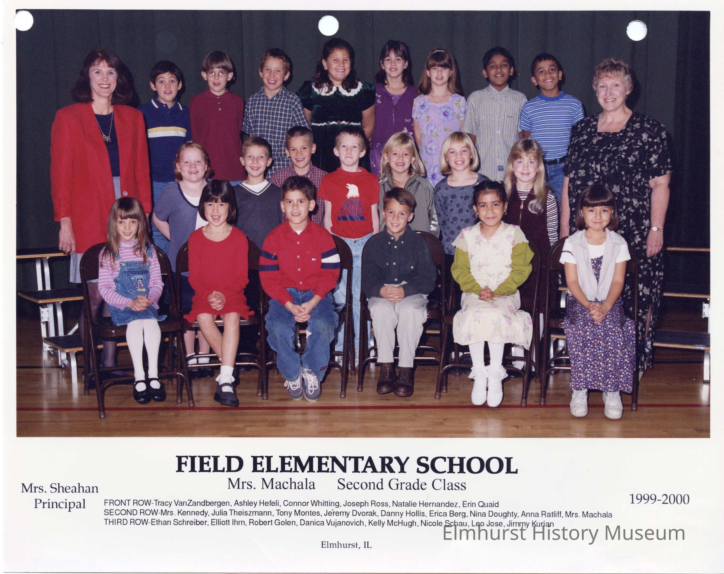 Second Grade class photograph from Field Elementary School, under teacher Mrs. Machala. Student names are listed at the bottom of the photograph.Photograph Details