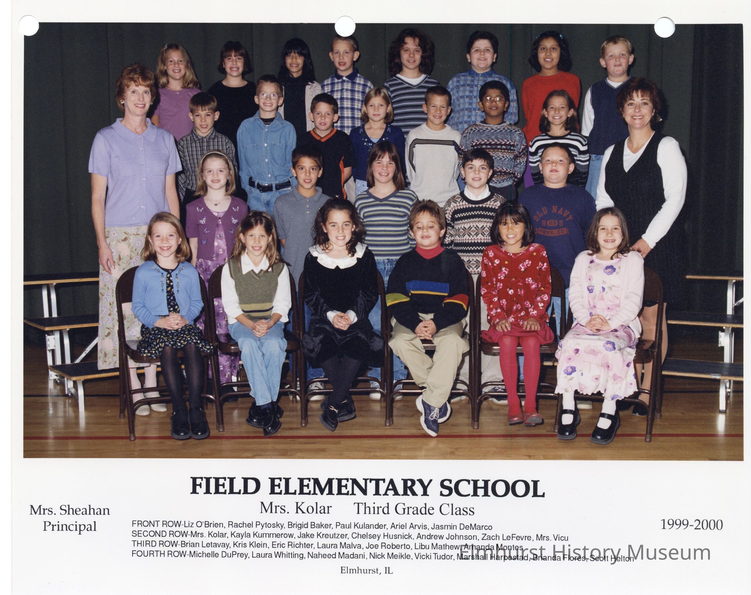 Third grade class photograph from Field Elementary School, under teacher Mrs. Kolar. Student names are listed at the bottom of the photograph.Photograph Details