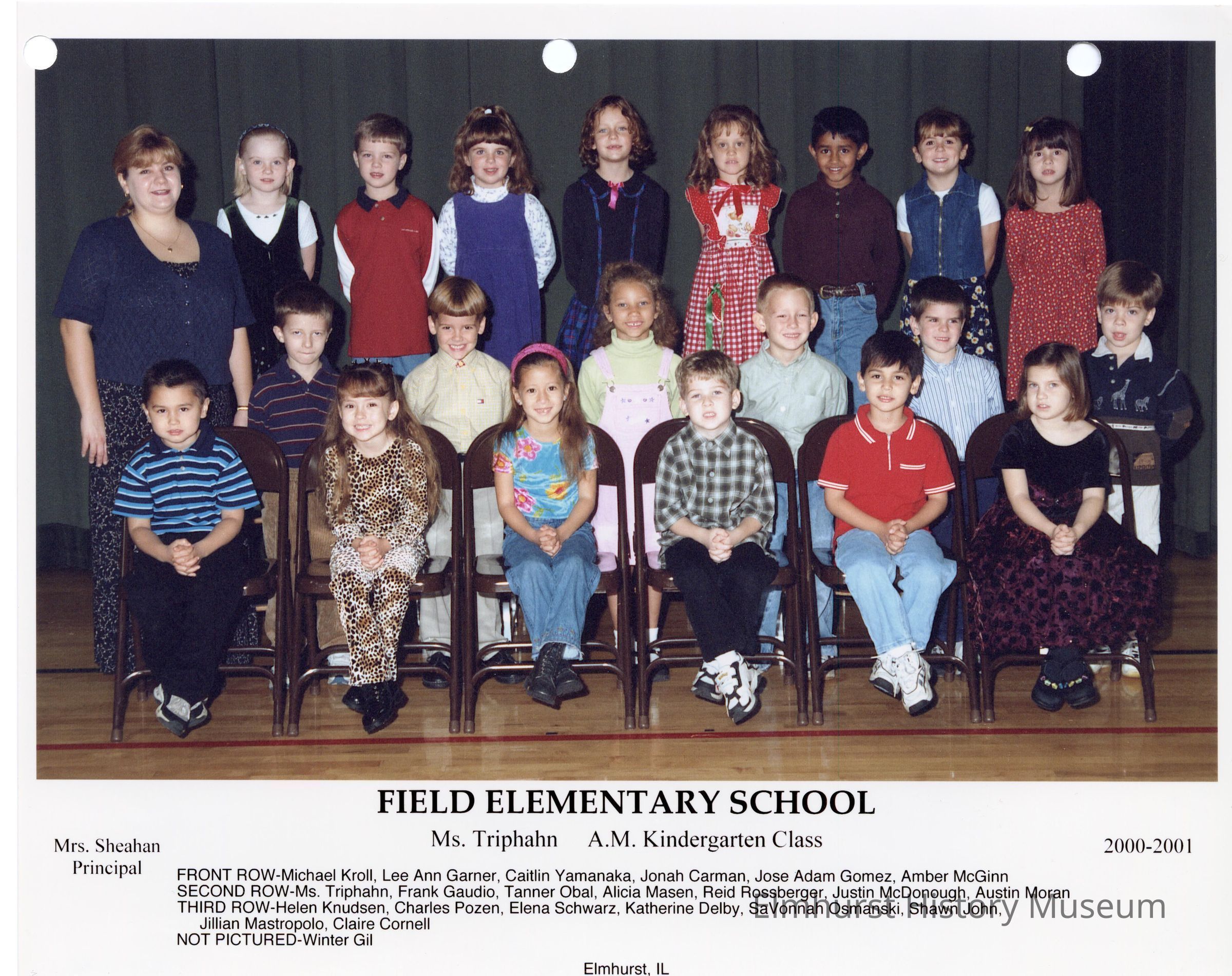 Kindergarten class photograph from Field Elementary School, under teacher Ms. Triphahn. Student names are listed at the bottom of the photograph.Photograph Details