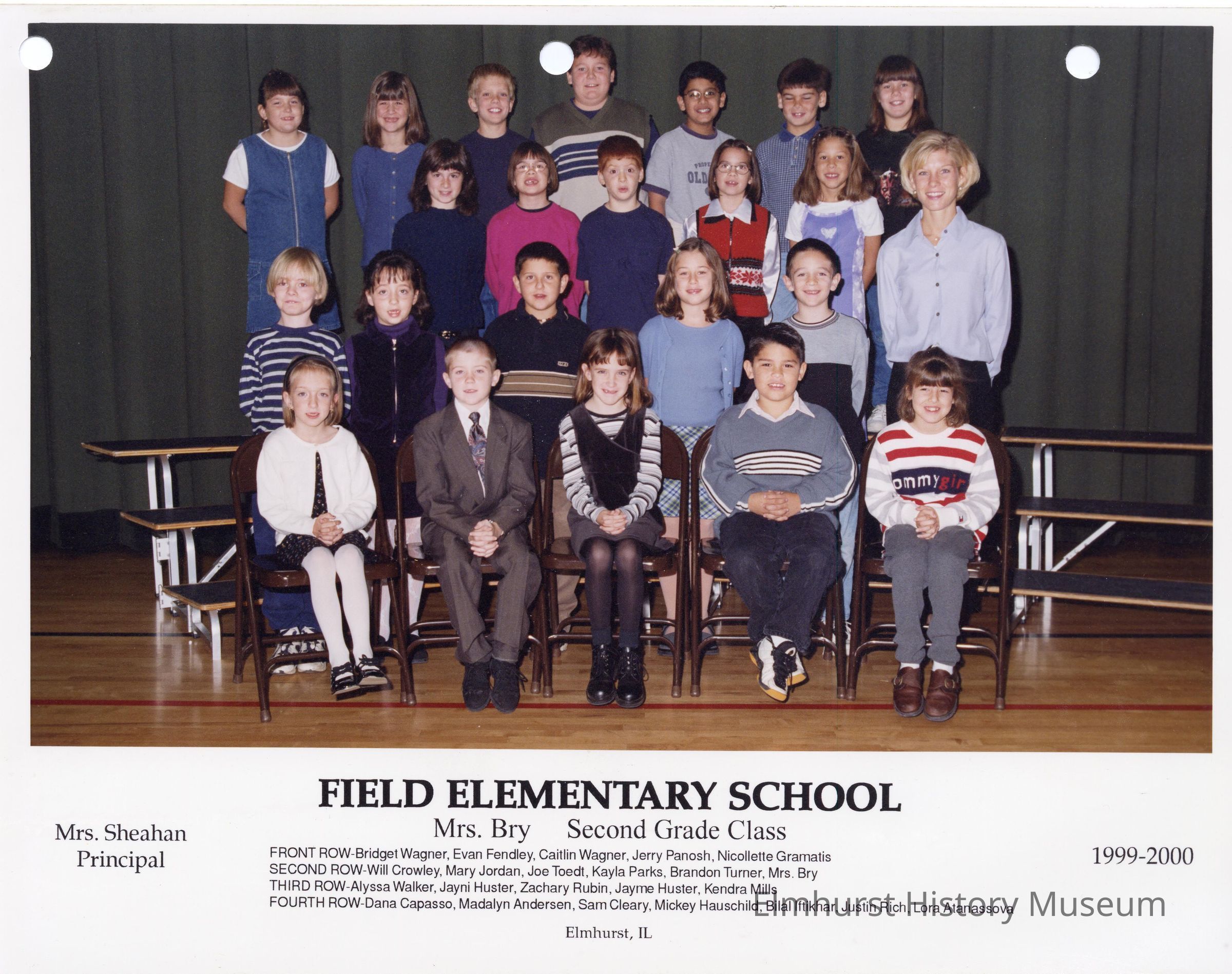 Second Grade class photograph from Field Elementary School, under teacher Mrs. Bry. Student names are listed at the bottom of the photograph.Photograph Details