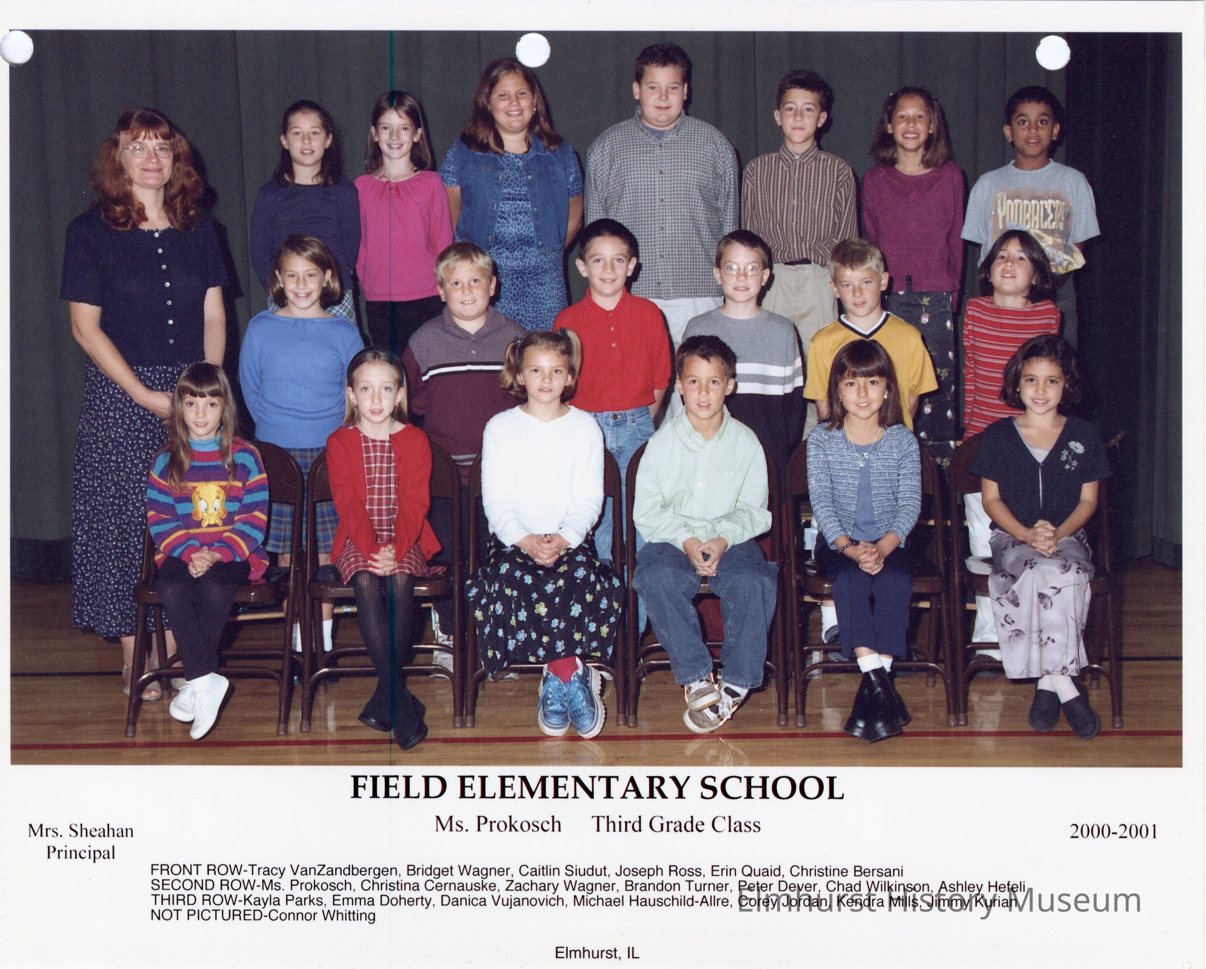 Third grade class photograph from Field Elementary School, under teacher Ms. Prokosch. Student names are listed at the bottom of the photograph.Photograph Details