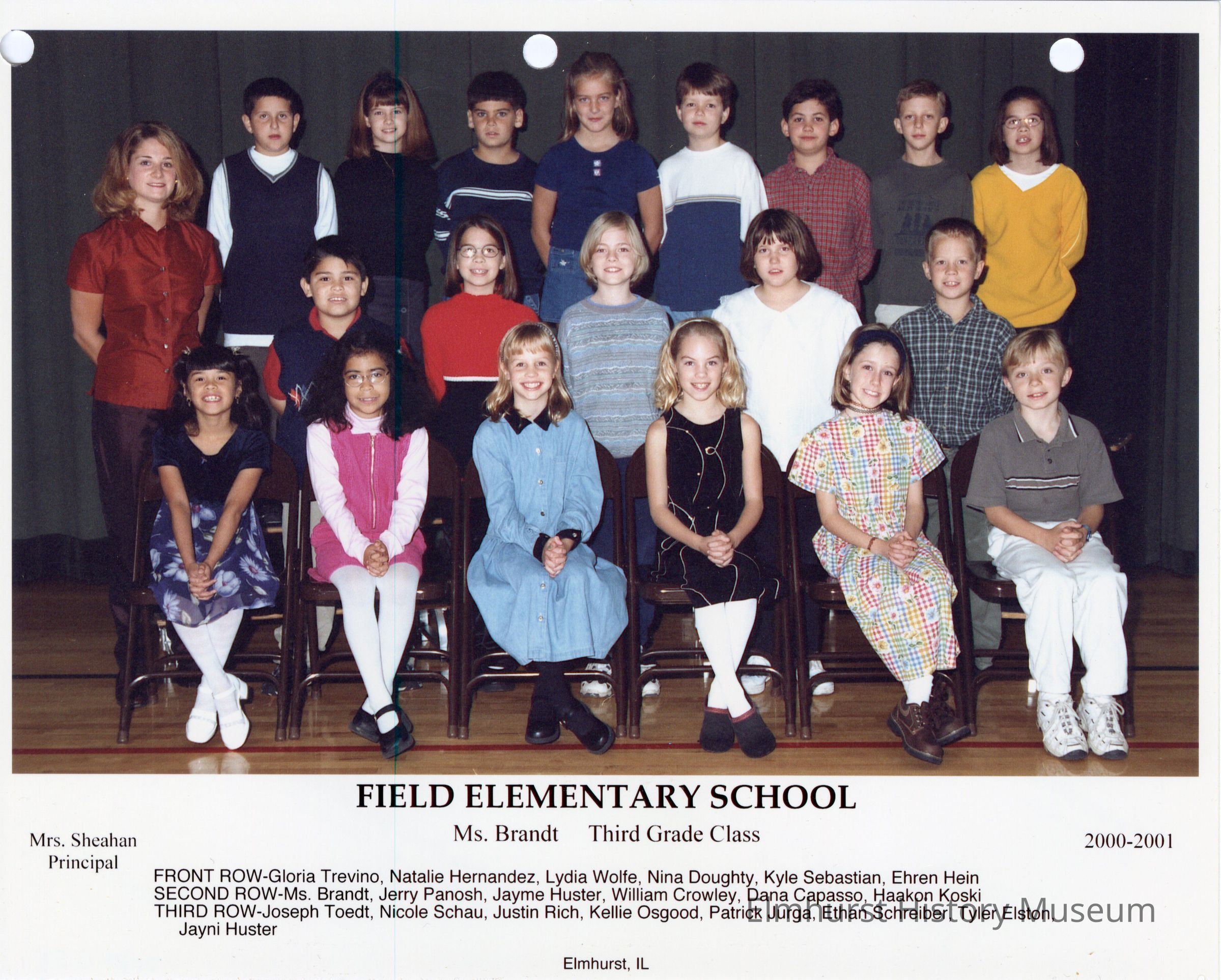 Third grade class photograph from Field Elementary School, under teacher Ms. Brandt. Student names are listed at the bottom of the photograph.Photograph Details