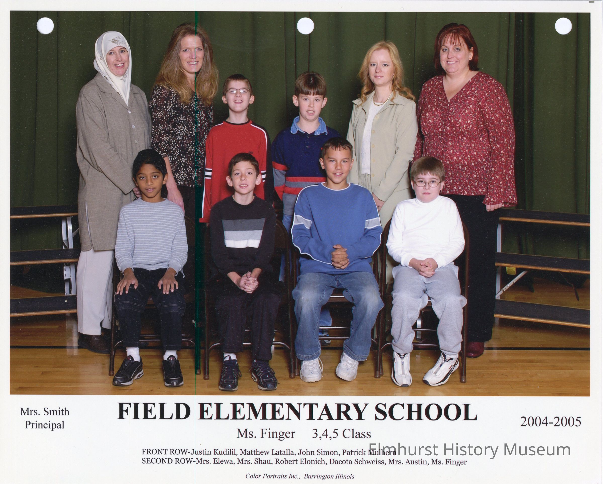 Primary instructional class photograph from Field Elementary School, under teacher Ms. Finger. Student names are listed at the bottom of the photograph.Photograph Details
